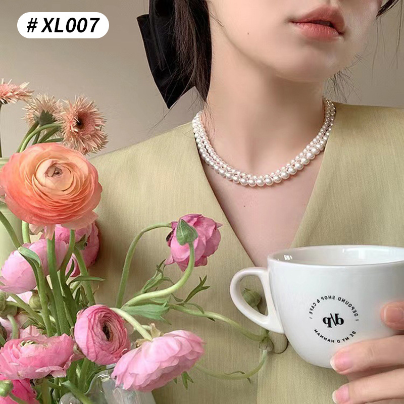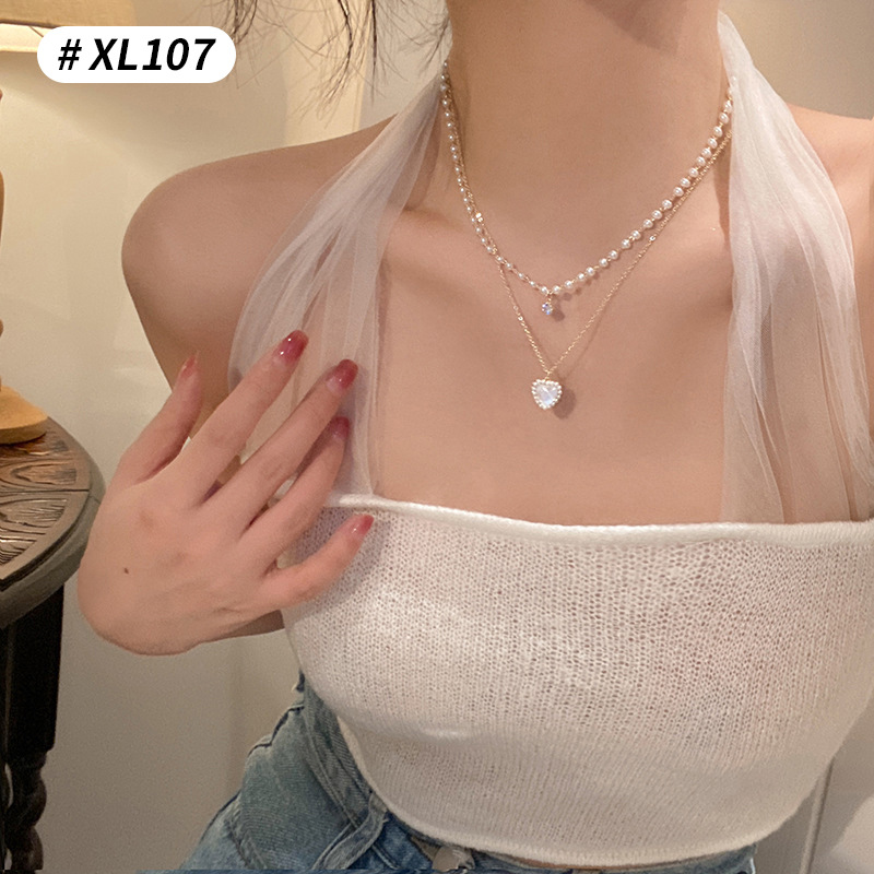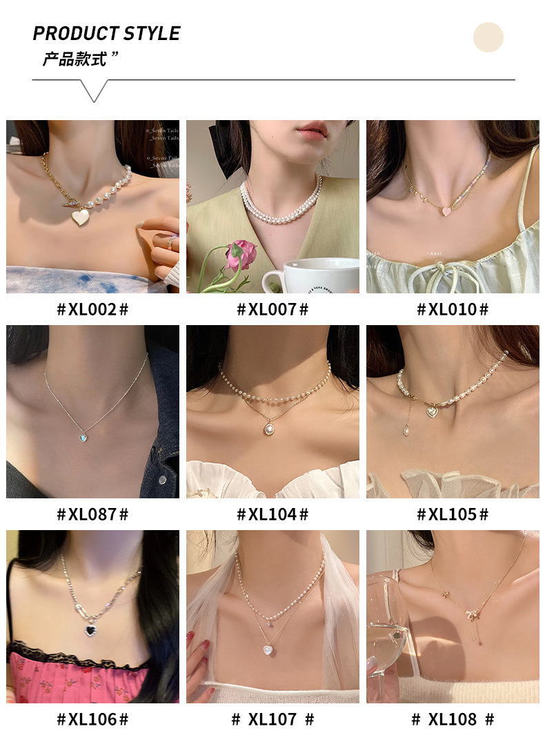Baroque Pearl Necklace Jewelry Women's Versatile Wholesale Niche Design Beaded Clavicle Chain Dopamine Accessories New Arrivals Pearl Double Heart Necklace (XL107))