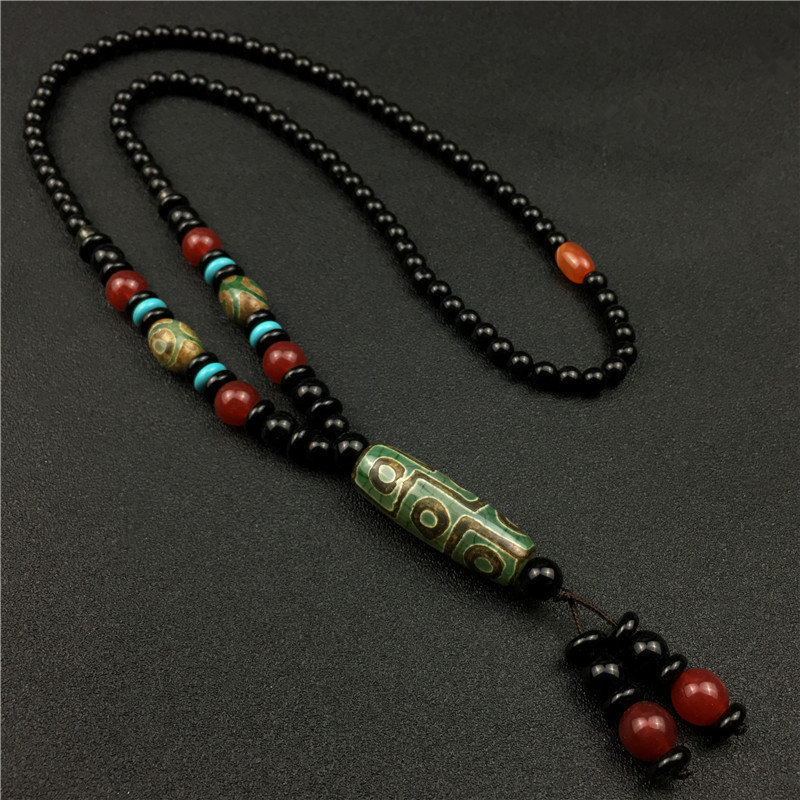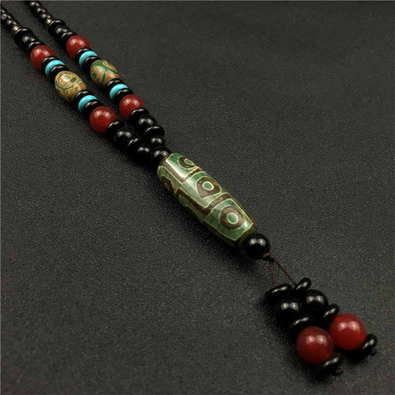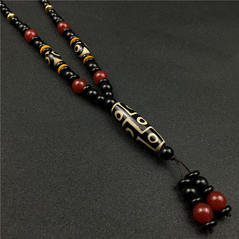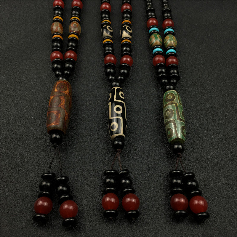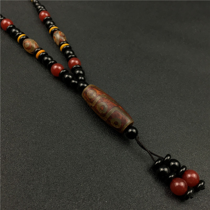 Retro Dzi Bead Pendant Necklace Ethnic Style Decoration Pendant Nine Eyes Dzi Bead Gift Box Set Live Marketing Gift Dzi Bead Necklace Tassel Box Certificate