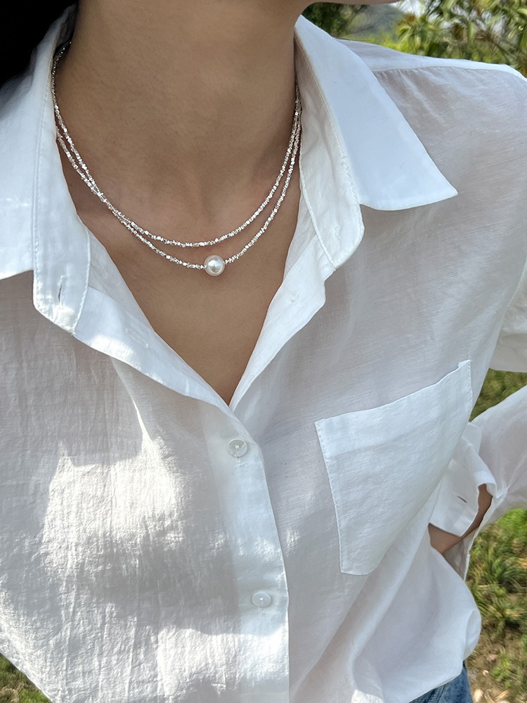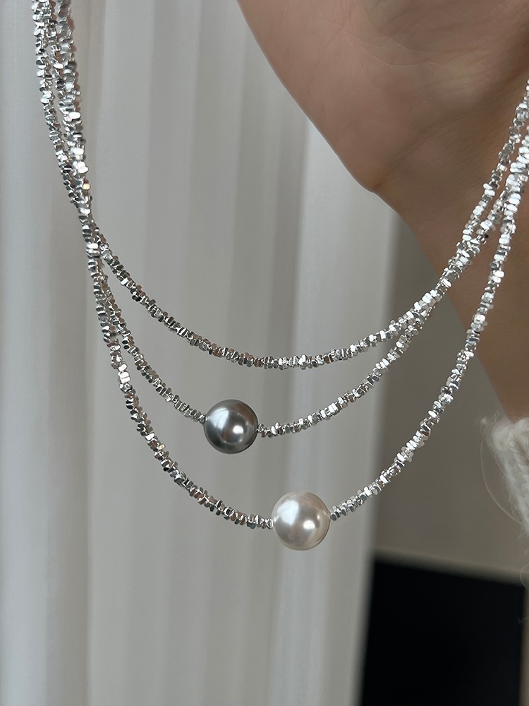 S925 pearl broken silver necklace female niche design high-grade collarbone chain neck necklace Shijia Gray Pearl Broken Silver Necklace